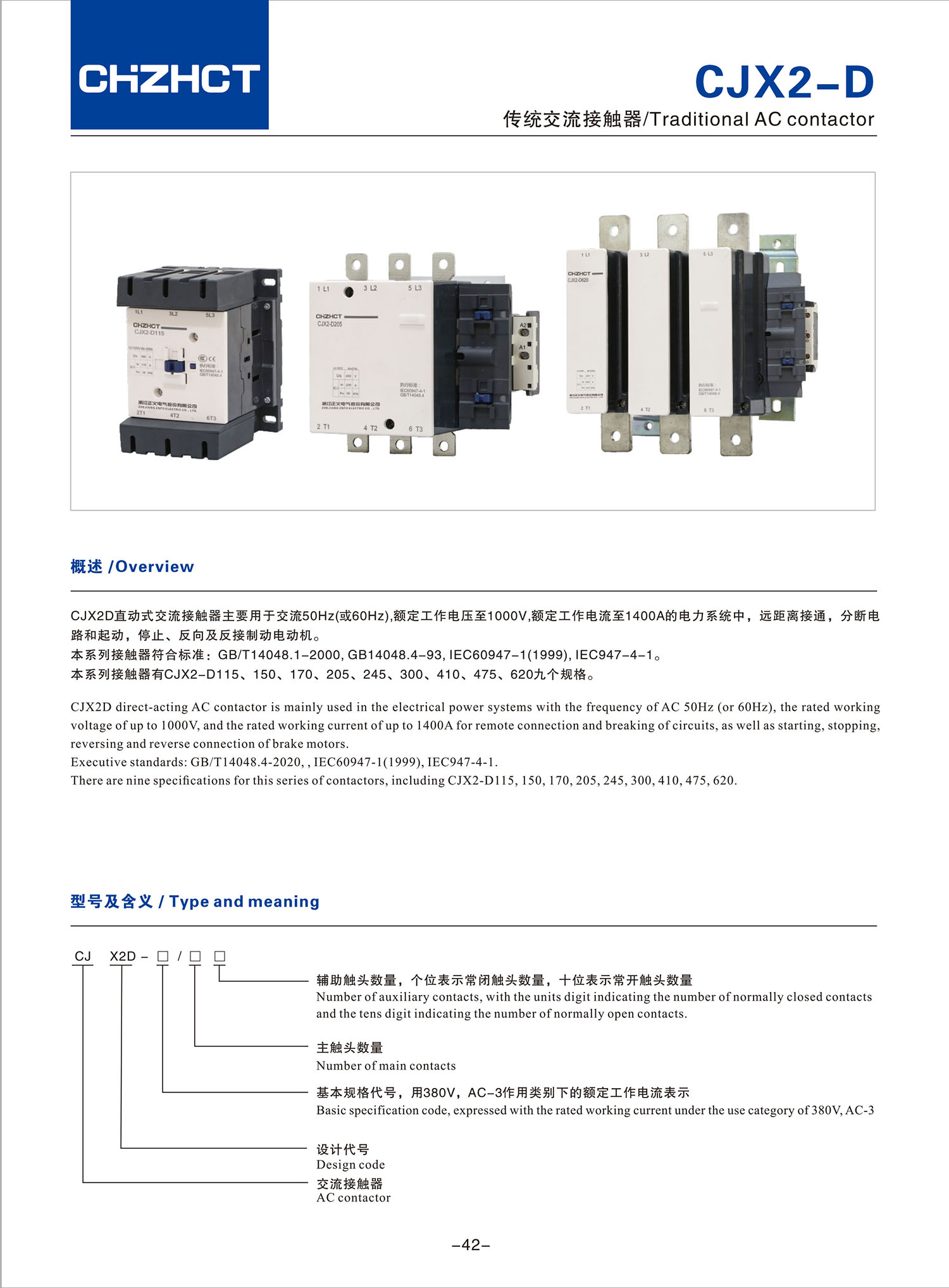 CJX2-D传统交流接触器产品说明书