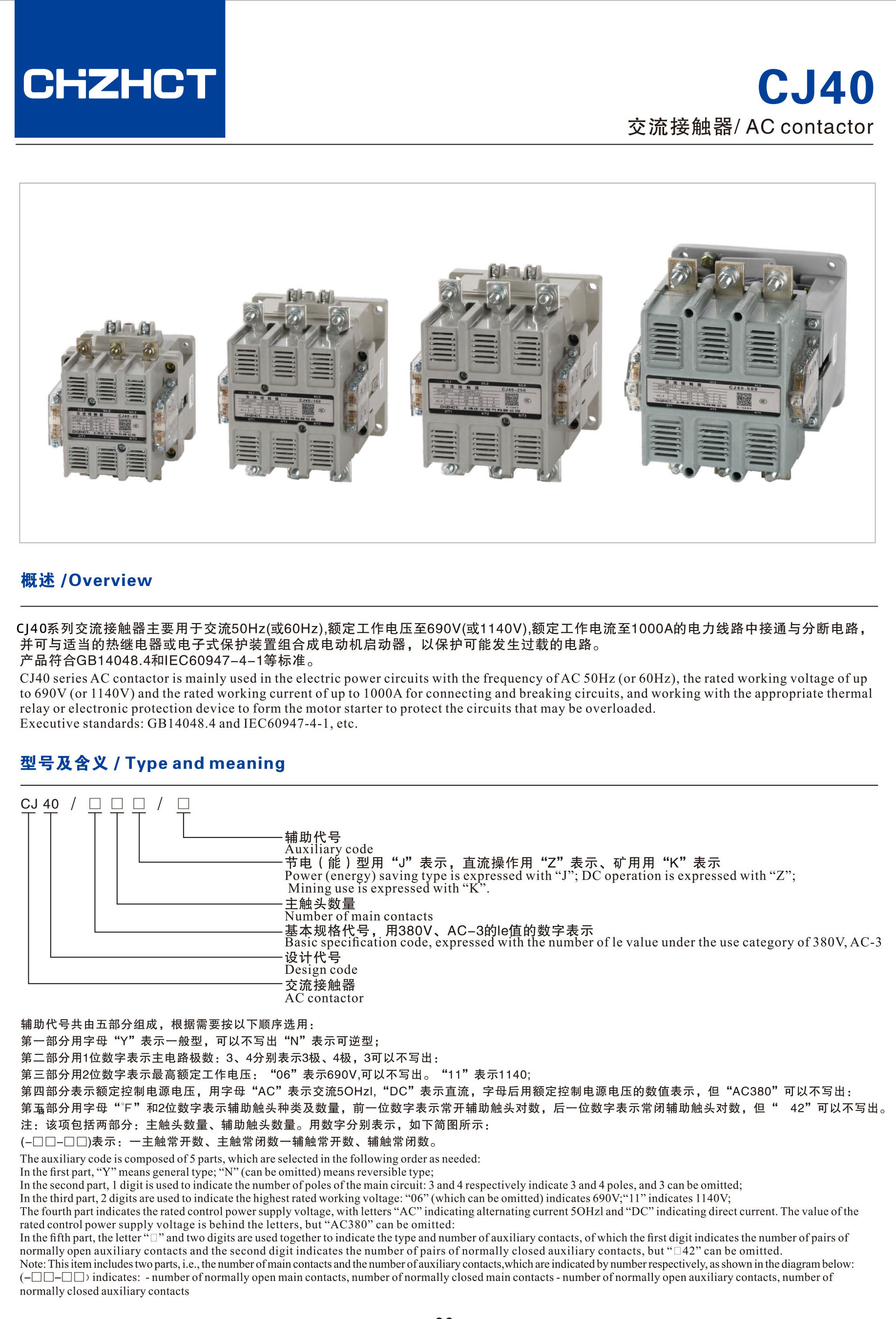 CJ40交流接触器_传统交流接触器_接触器_工业控制与保护_产品中心_永乐高60net电气股份有限公司