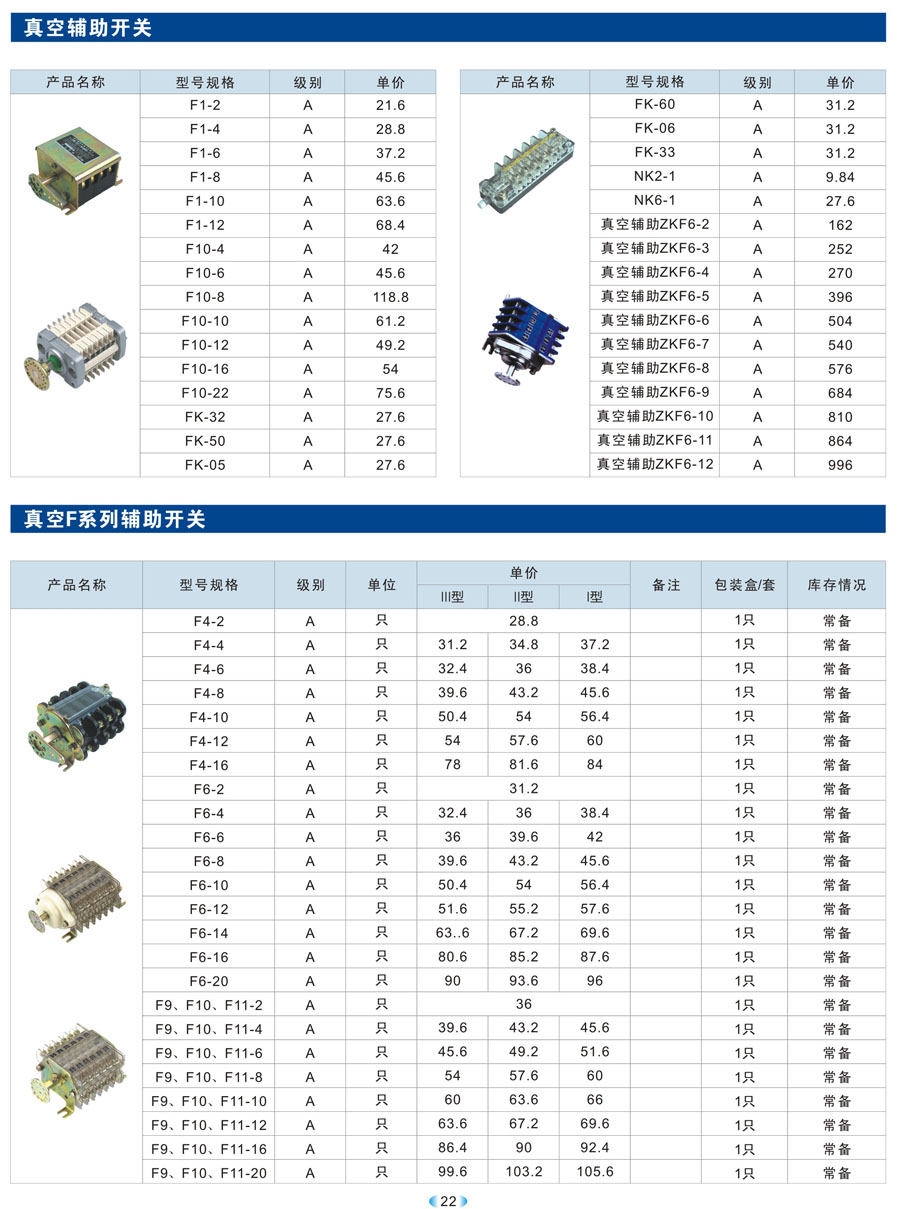 真空辅助开关、真空F系列辅助开关