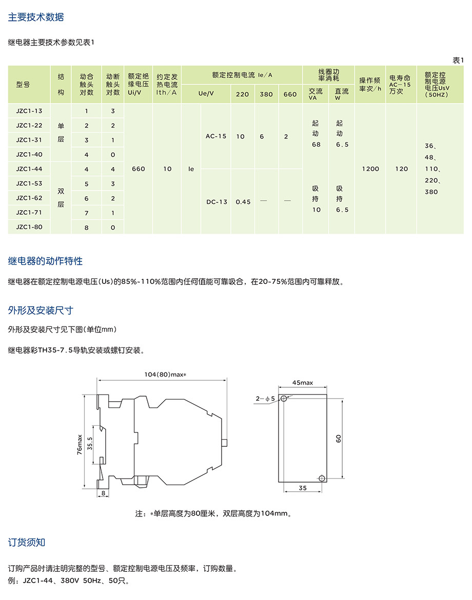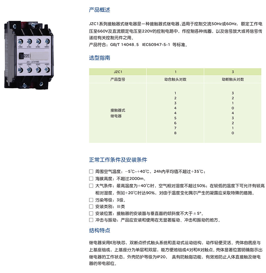 JZC1 系列接触器式继电器产品说明书