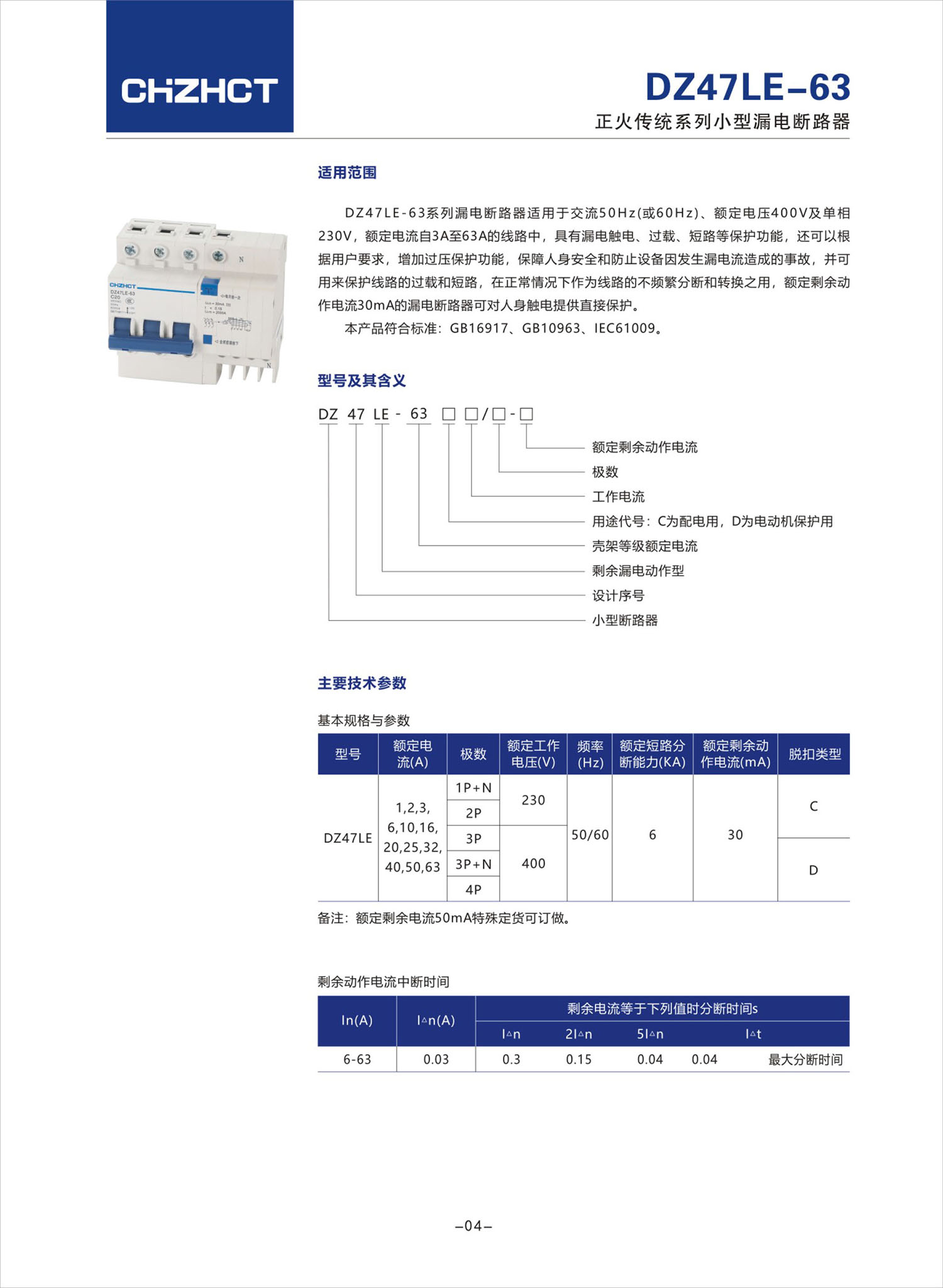 DZ47LE-63 小型漏电断路器_漏电小型断路器_终端电器_产品中心_永乐高60net电气股份有限公司
