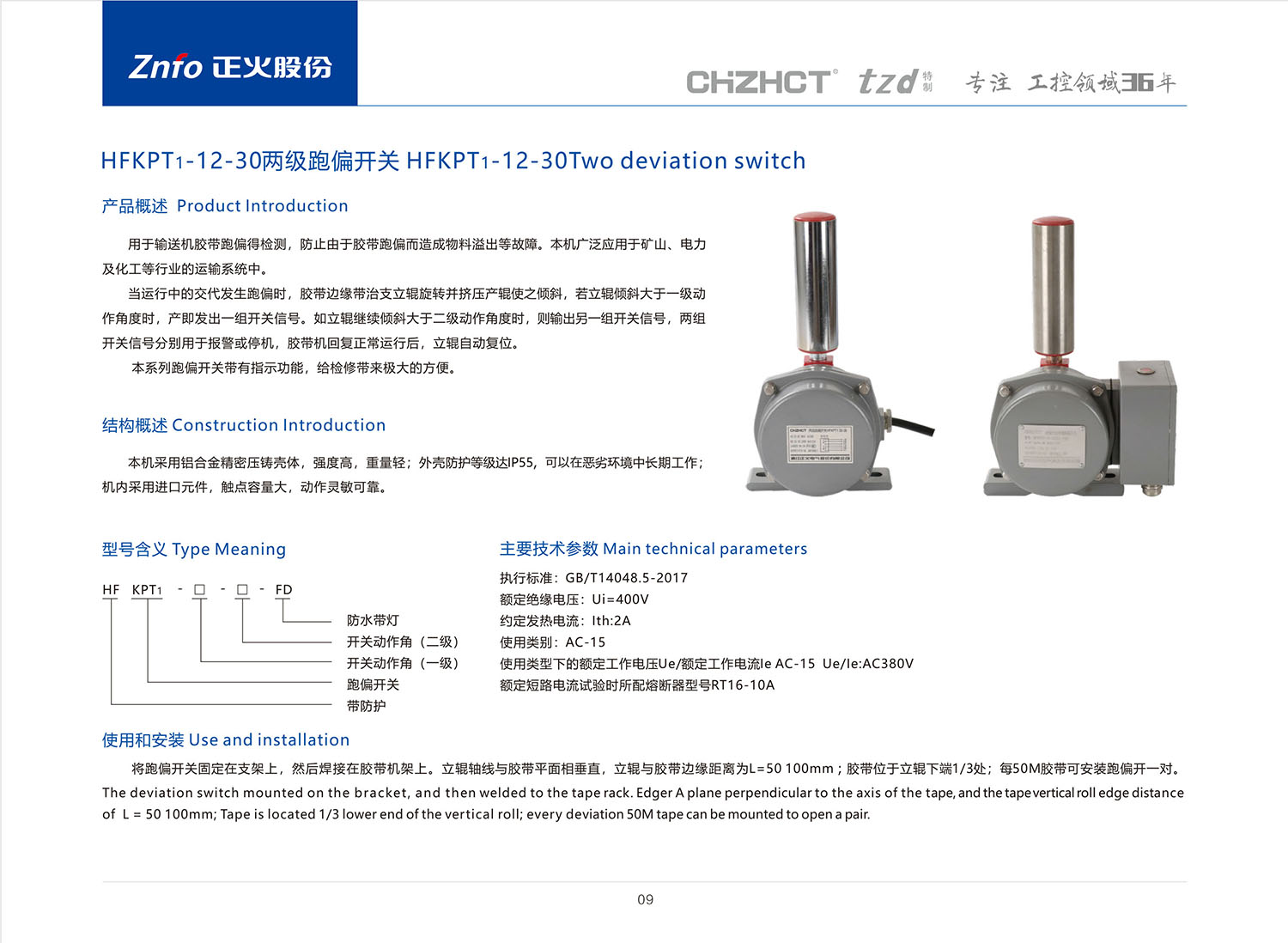 HFKPT1-12-30两级跑偏开关 _跑偏开关_行程/微动/跑偏/拉绳/超速_工业控制与保护_产品中心_永乐高60net电气股份有限公司