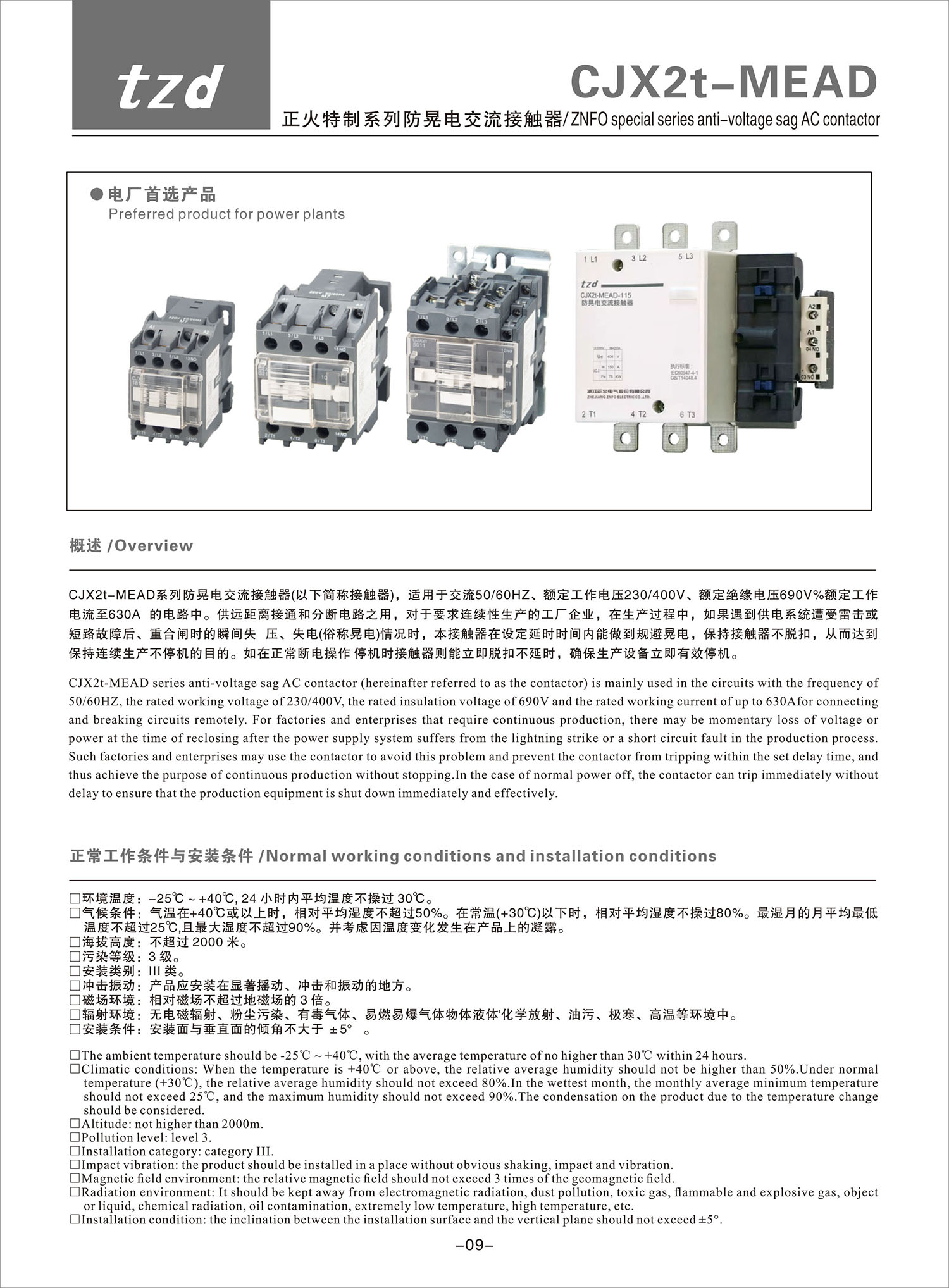 CJX2t-MEAD 正火特制系列防晃电交流接触器产品说明书