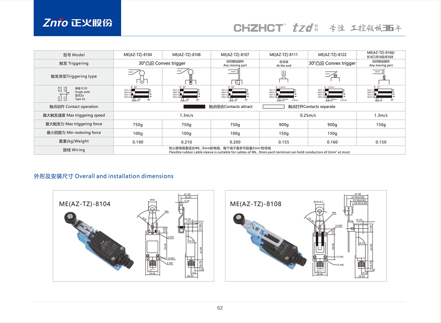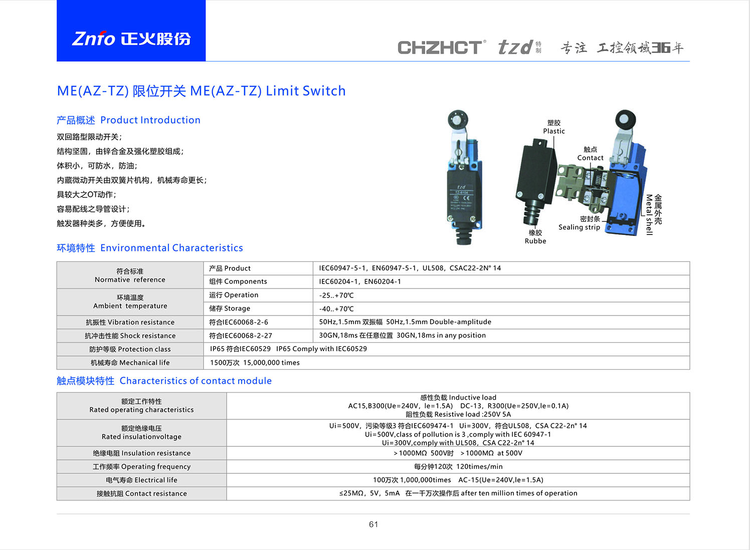 ME(AZ-TZ)限位开关_行程/限位开关_行程/微动/跑偏/拉绳/超速_工业控制与保护_产品中心_永乐高60net电气股份有限公司